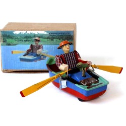 The boat moves with a realistic rocking motion due to the uneven wheels. While the man rows convincingly, pulling back at each stroke. Clockwork, Made in China, 12cm
